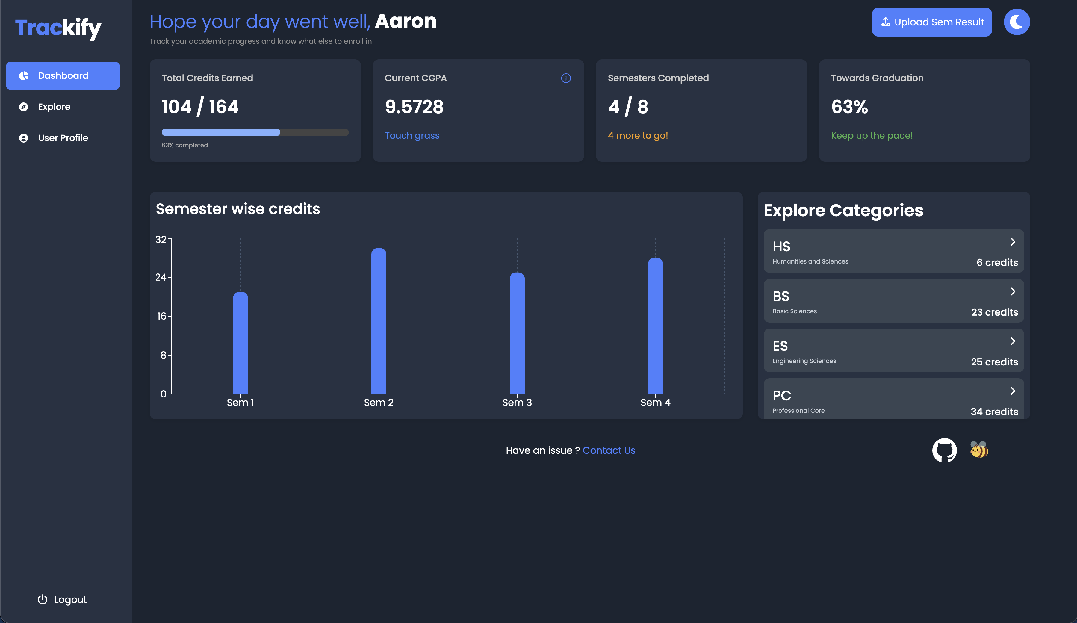 An academic credit and CGPA tracker that extracts grades directly from PDF grade sheets to provide students with instant insights into their academic progress, eliminating manual calculations.